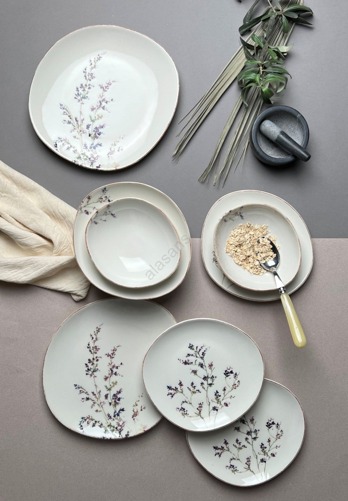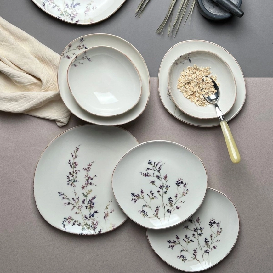 12-piece porcelain dinner set, white/purple