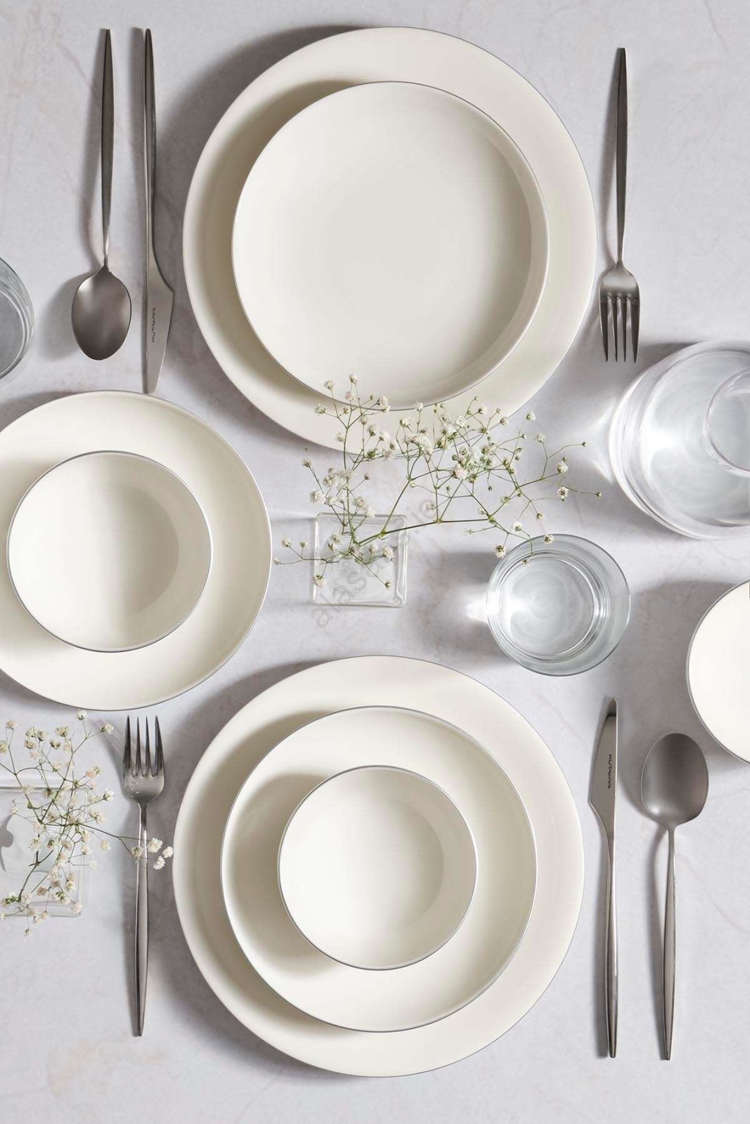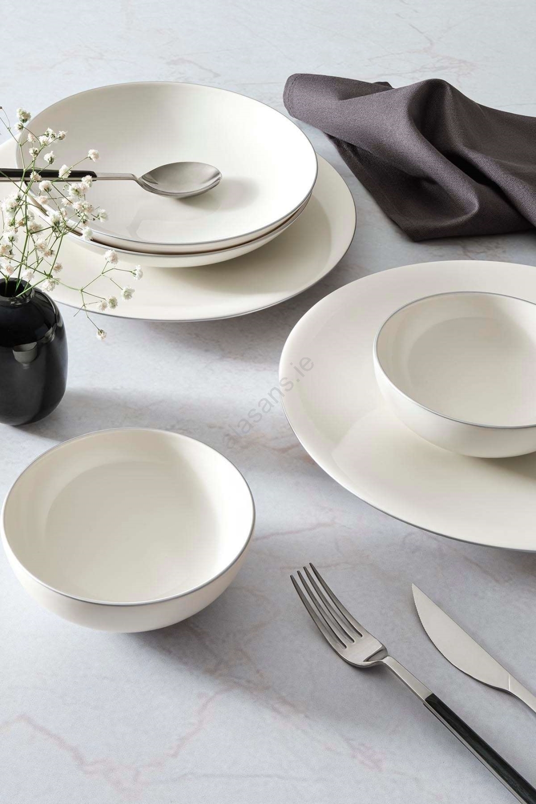 18-piece porcelain dinner set — white/silver