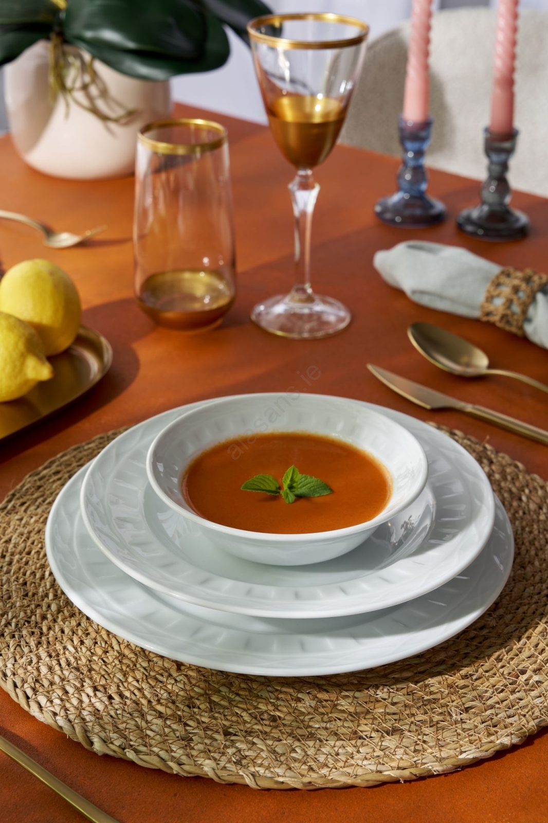 • Elegant dinnerware set designed for everyday dining and special occasions.