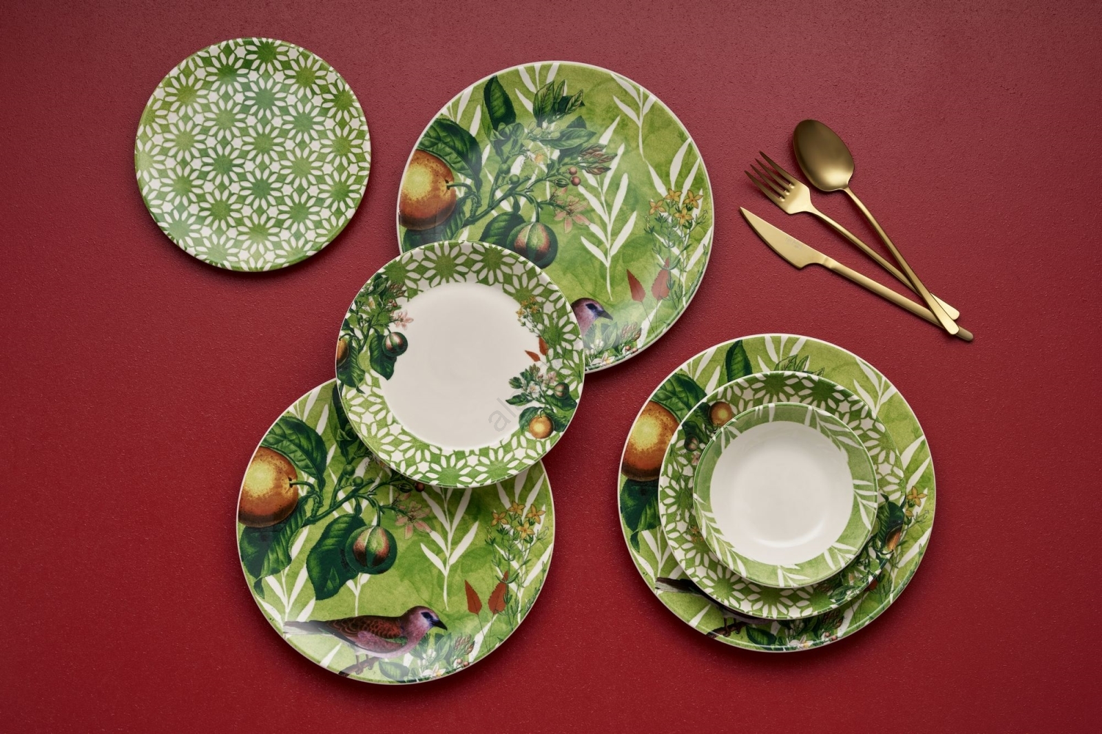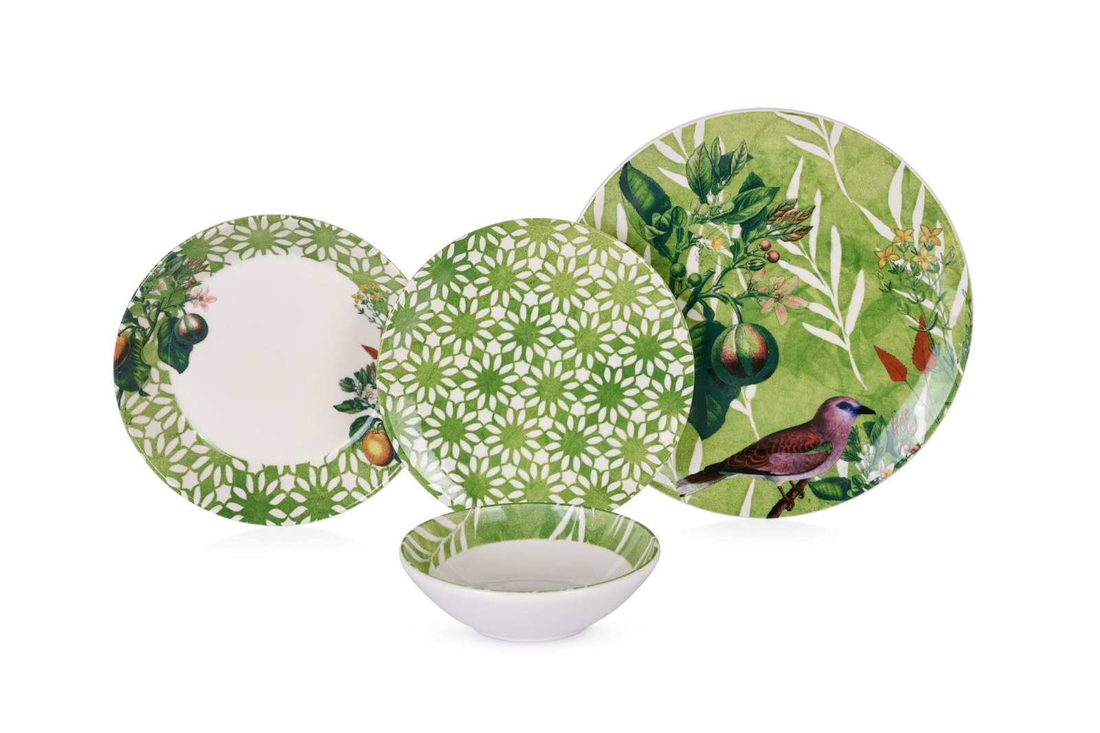 24-piece ceramic dinnerware set, green/white