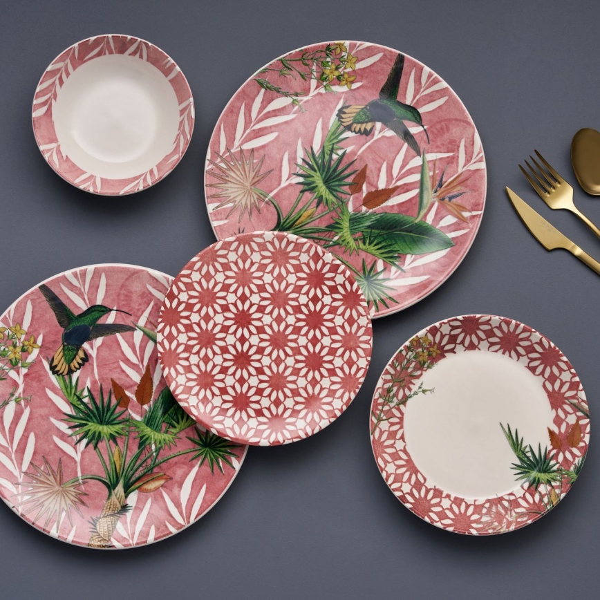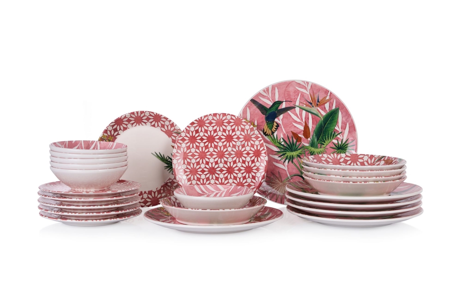 24-Piece Ceramic Dinnerware Set — Red, Green and White