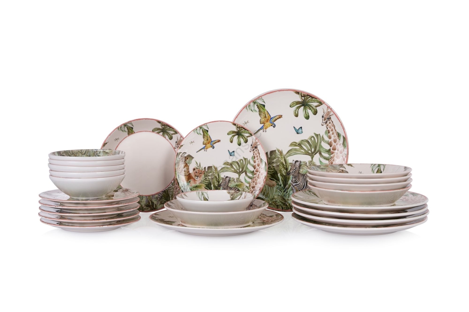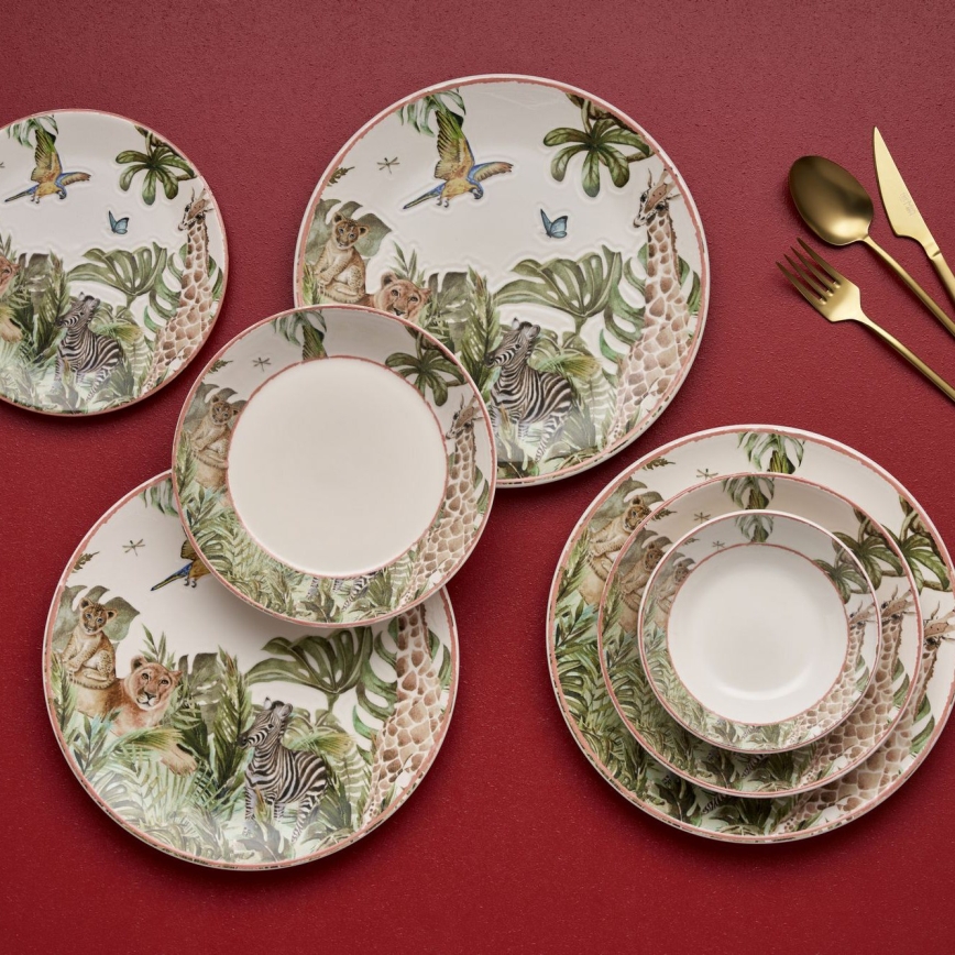 24-piece multicolored ceramic dinner set