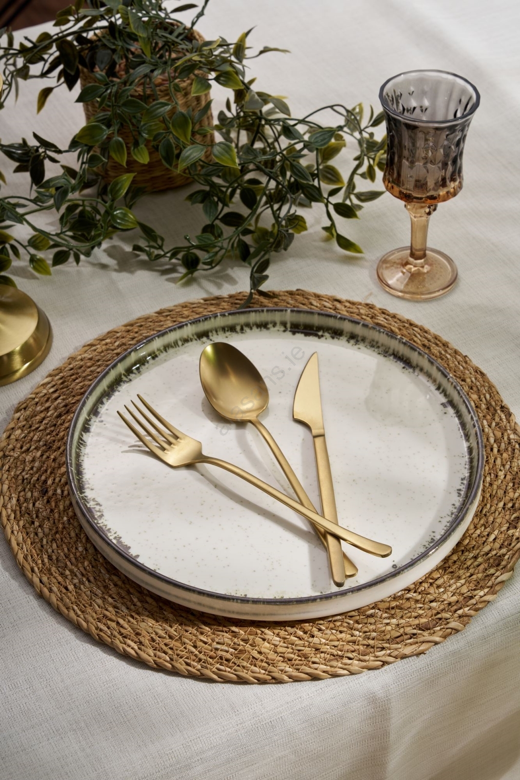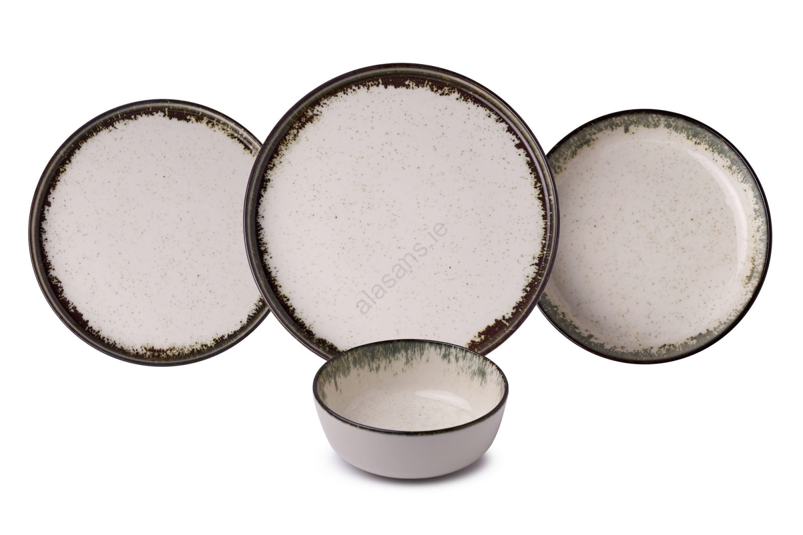 24-piece porcelain dinner set in white and brown