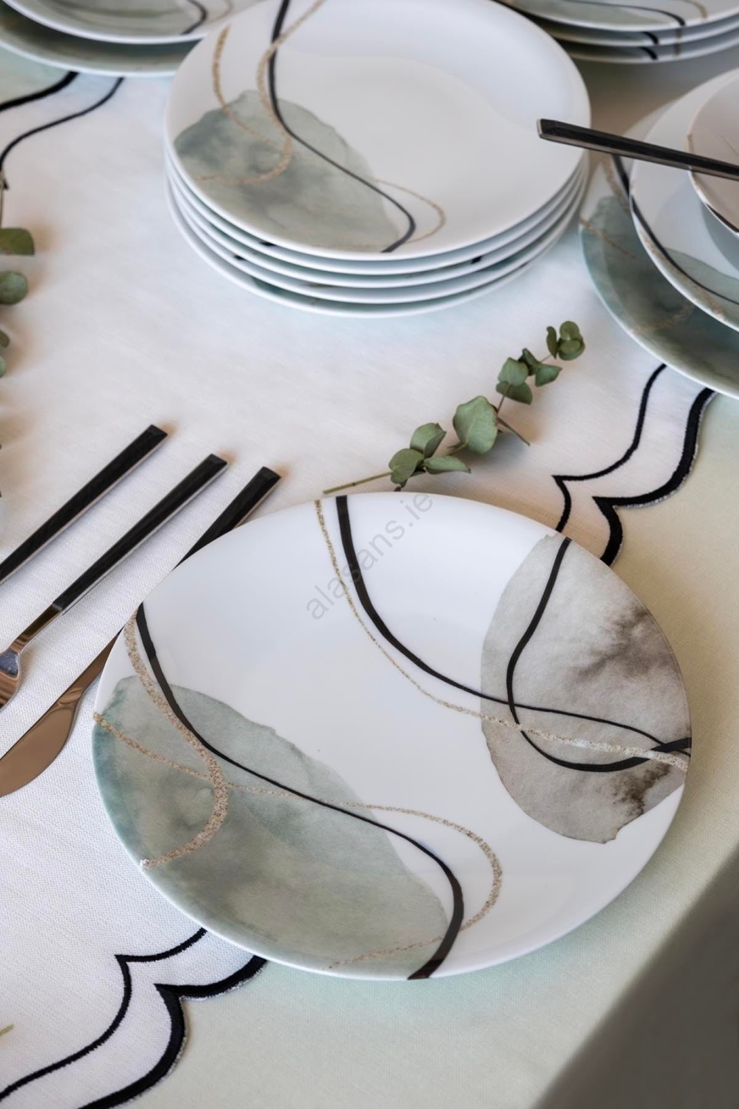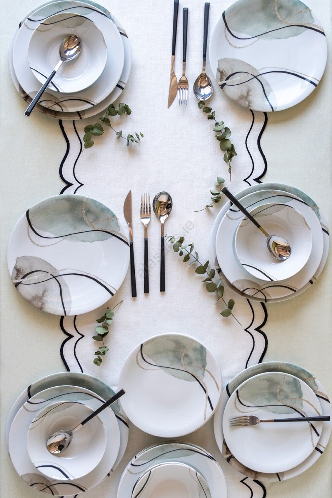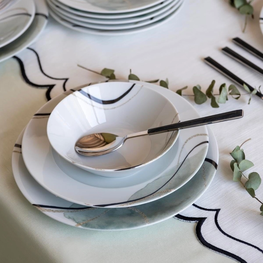 24-piece porcelain dinnerware set, grey/green