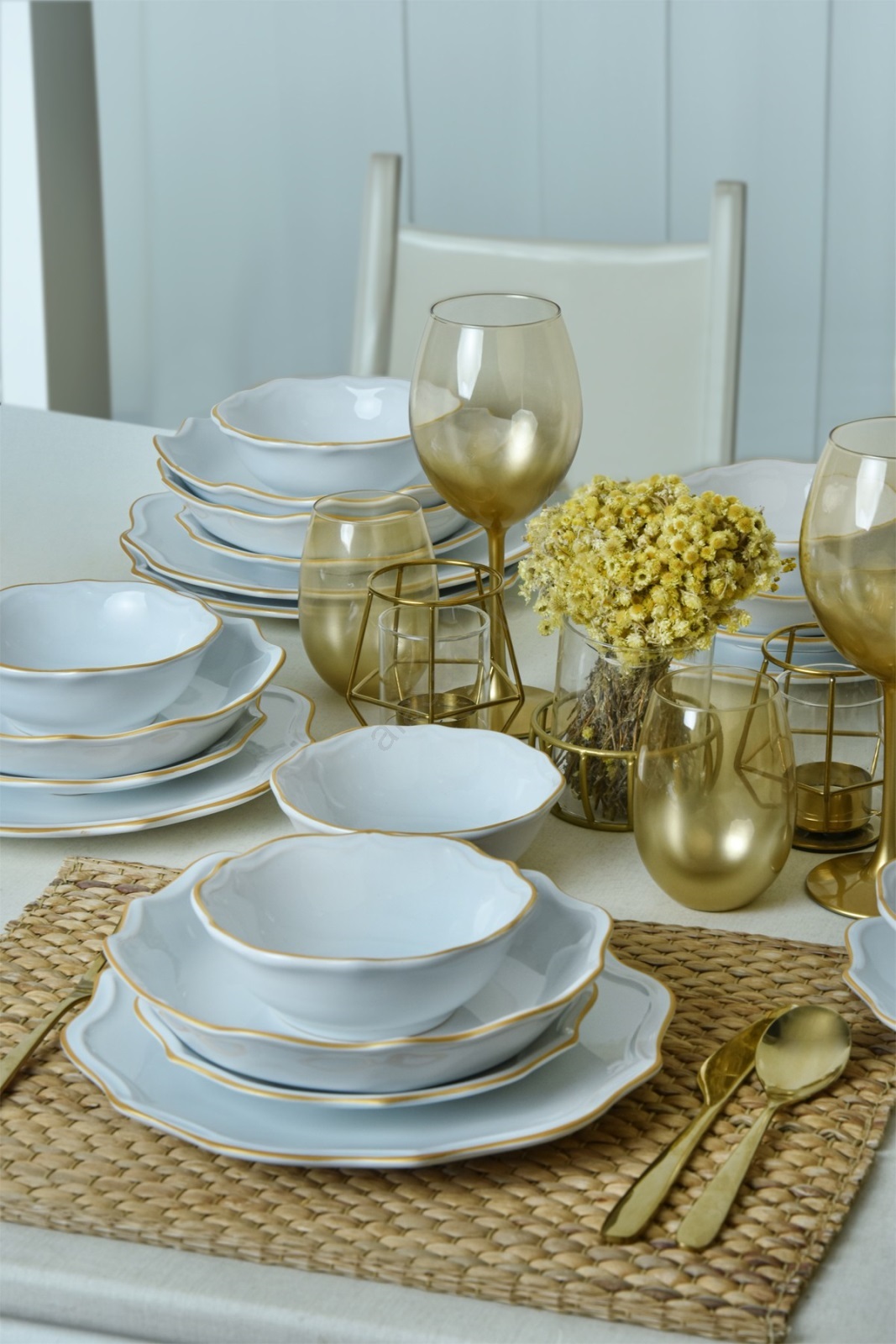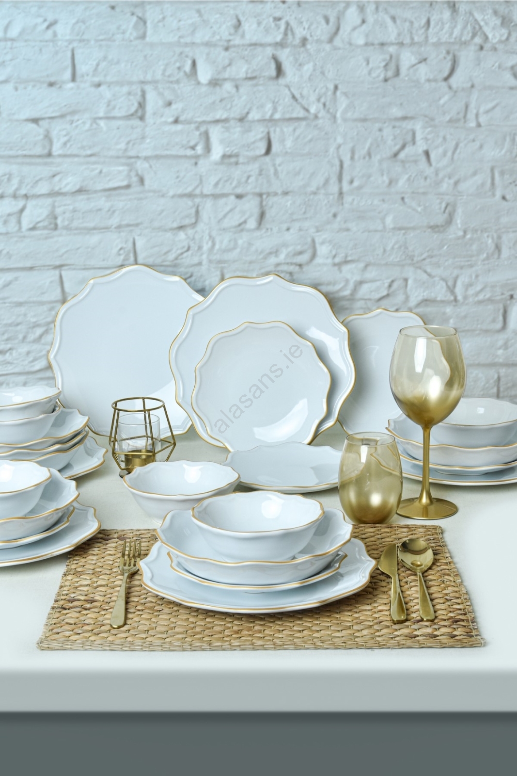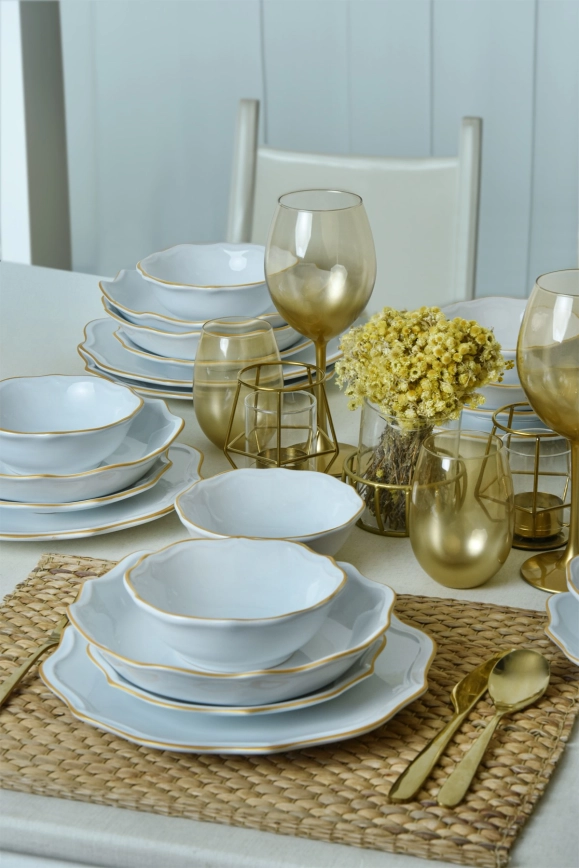24-piece stoneware dinnerware set - white with gold trim