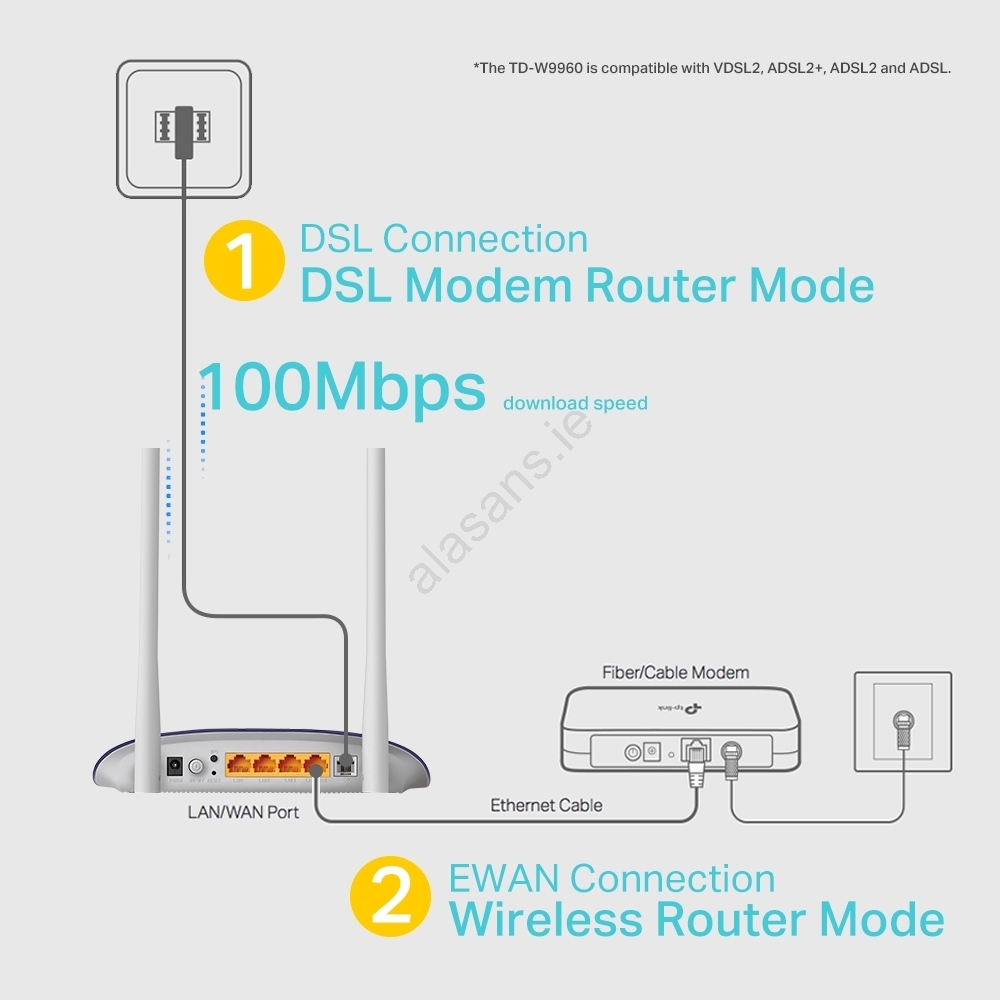 • Compatible with VDSL2, ADSL2+, ADSL2 and ADSL standards, so it works with most ISP DSL networks.