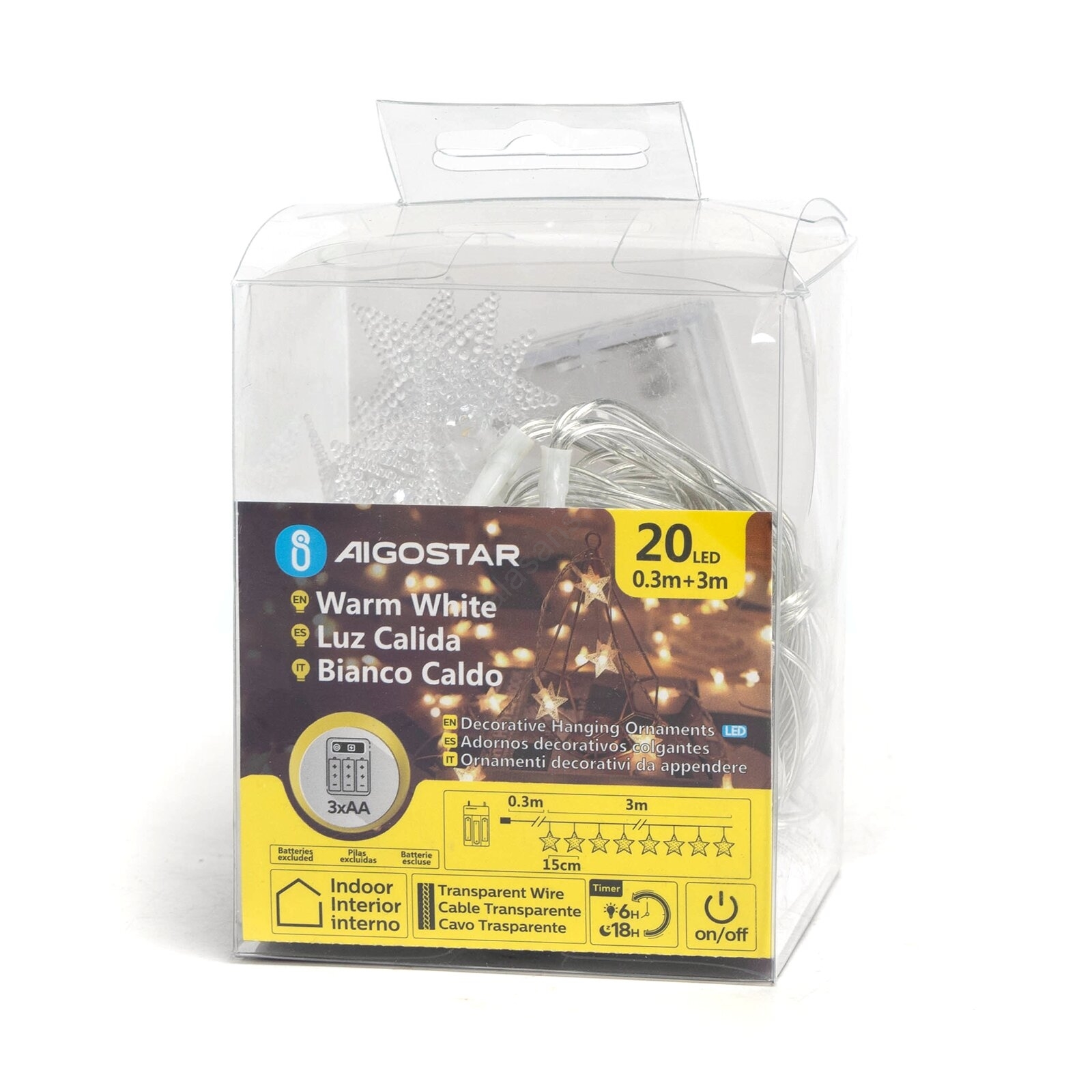 Aigostar - LED string lights, 20 LEDs / 3xAA, 3.3 m, star-shaped