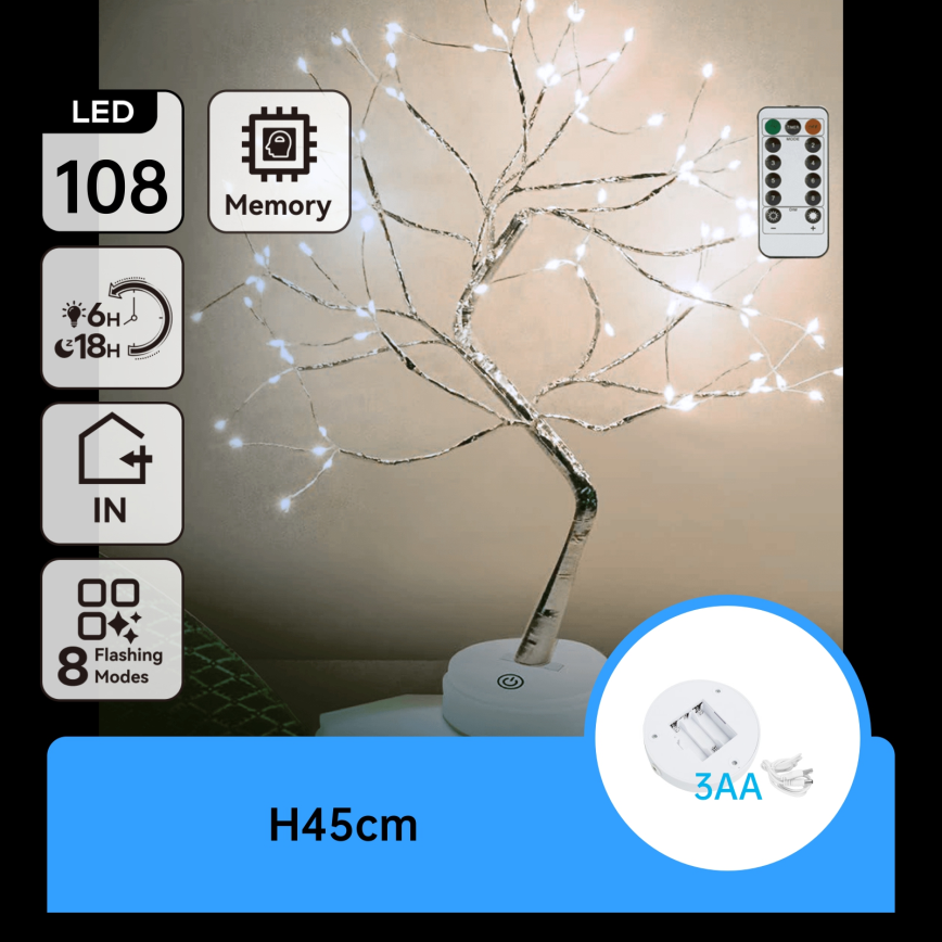Aigostar - LED Christmas decoration 108xLED/3xAA/8 functions 45 cm cool white