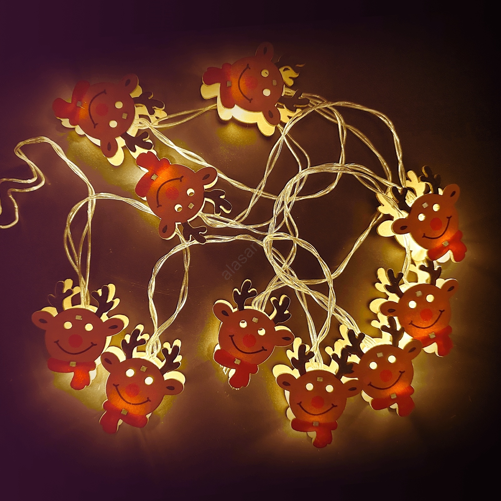 Aigostar - LED string lights, 10 LEDs, battery-powered (3×AA), 1.5 m, warm white, reindeer