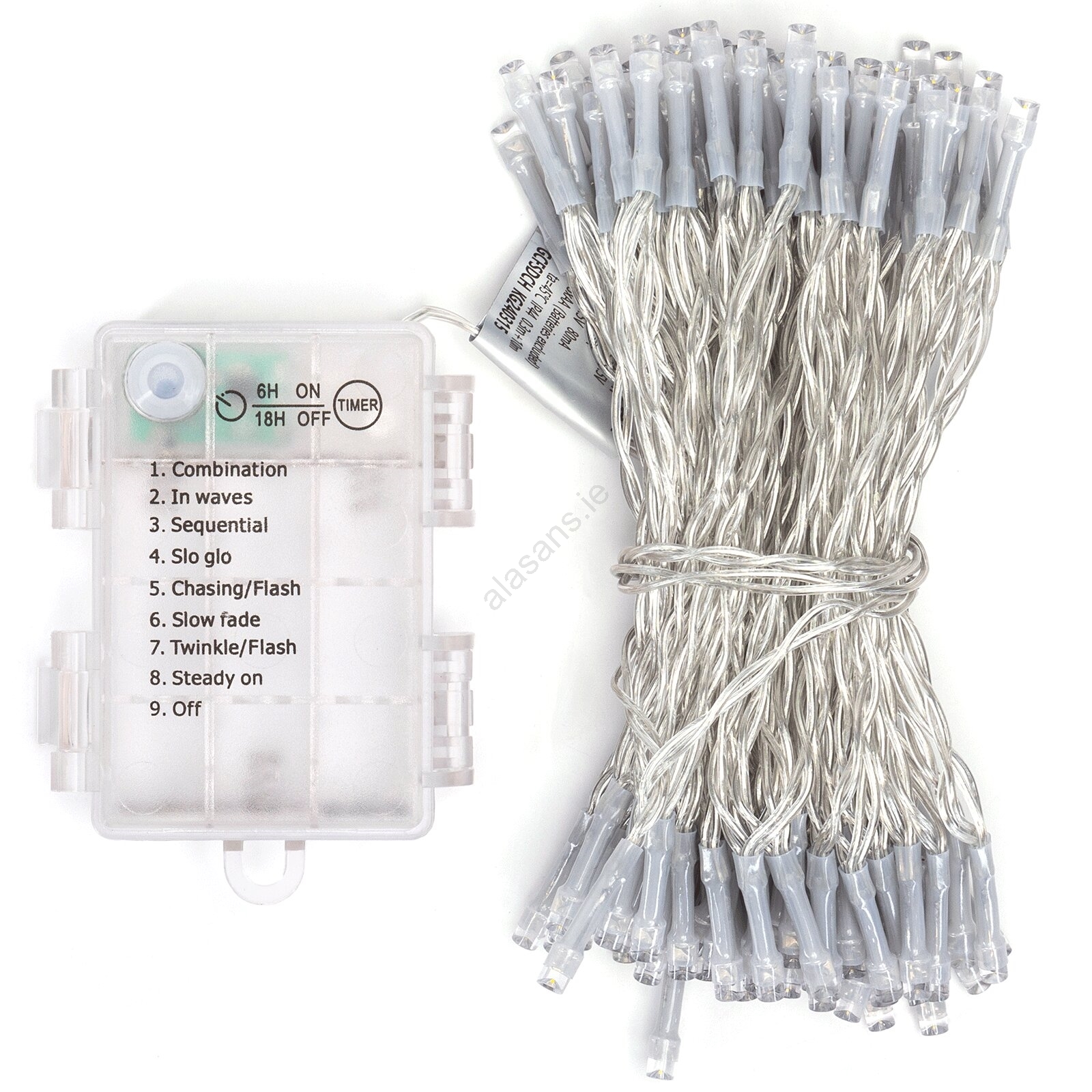 Aigostar - LED Outdoor String Lights, 100 LEDs, 8 Lighting Modes, 3x AA Batteries, 10.3 m, IP44, Warm White