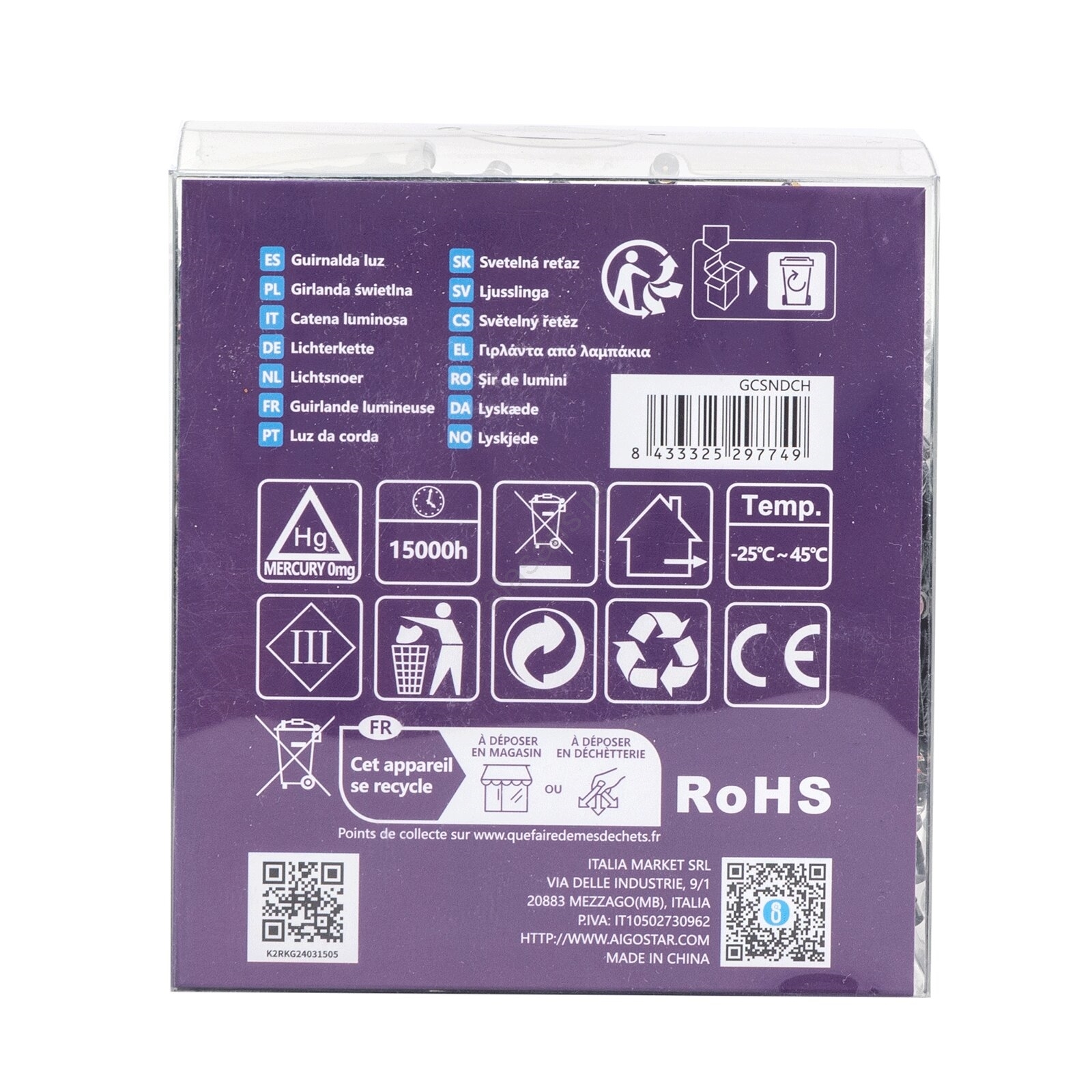 • Aigostar - LED Outdoor String Lights, 300 LEDs, 8 Modes, 3xAA, 15.3 m, IP44, Multicolor