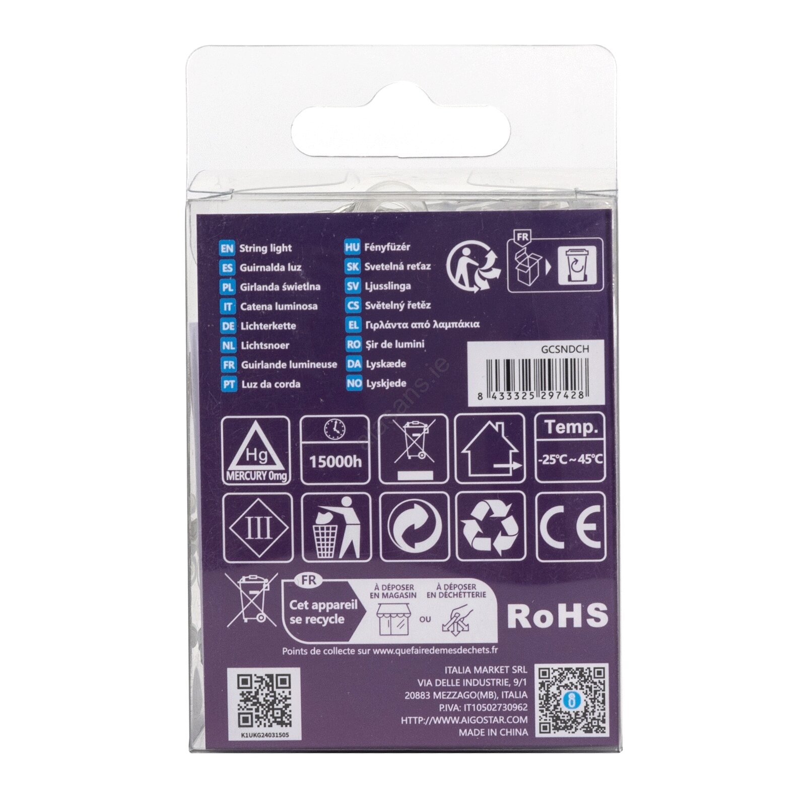 Aigostar -LED Outdoor Christmas chain 50xLED/8 functions 3xAA 5,3m IP44 cool white