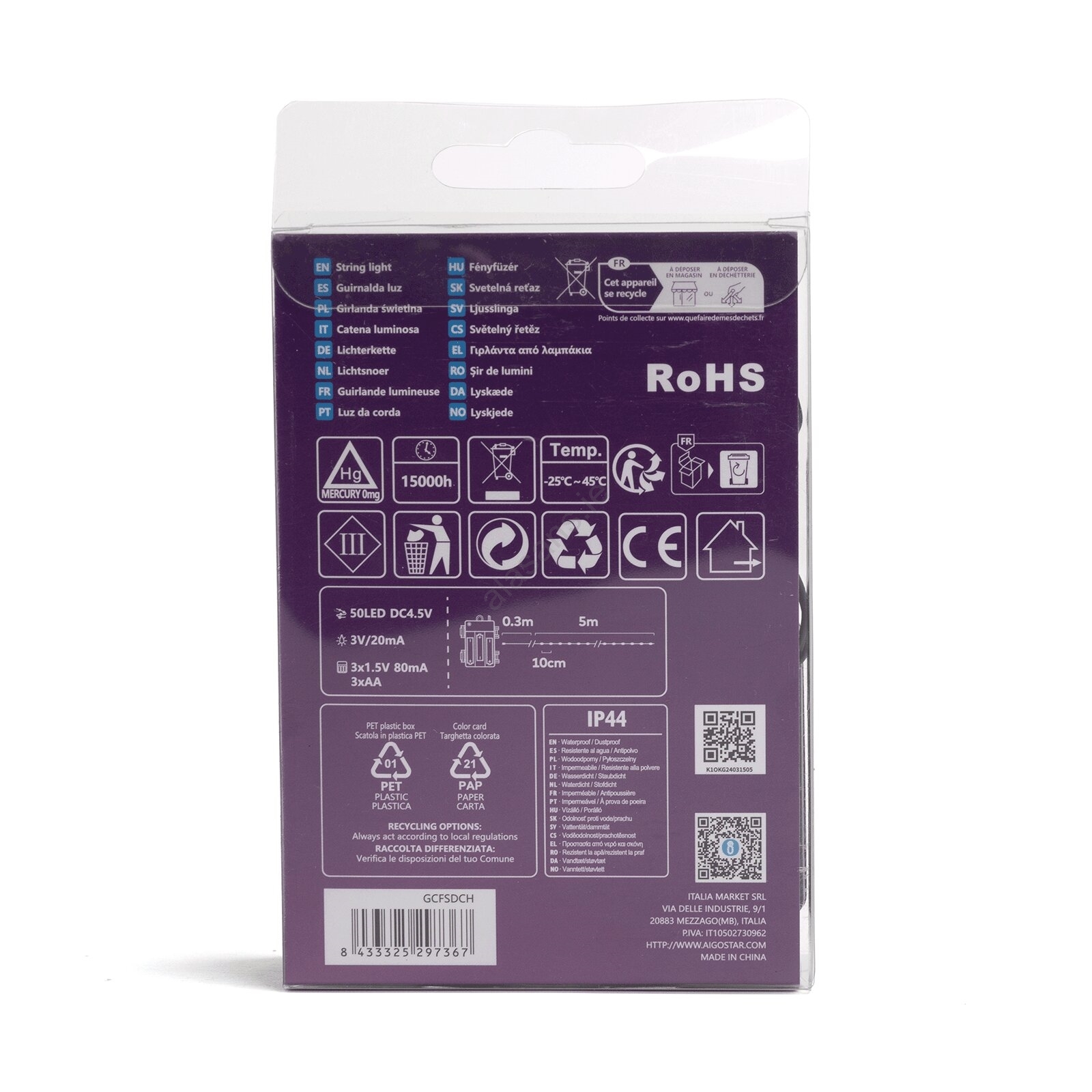 • Aigostar - LED Outdoor String 50xLED/8 modes 3xAA 5,3m IP44 multicolor