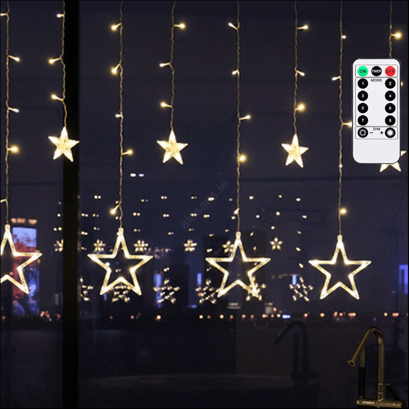 • Aigostar - LED Outdoor String Lights 120 LEDs / 8 Modes 3 x 0.6 m IP44 Warm White + Remote Control