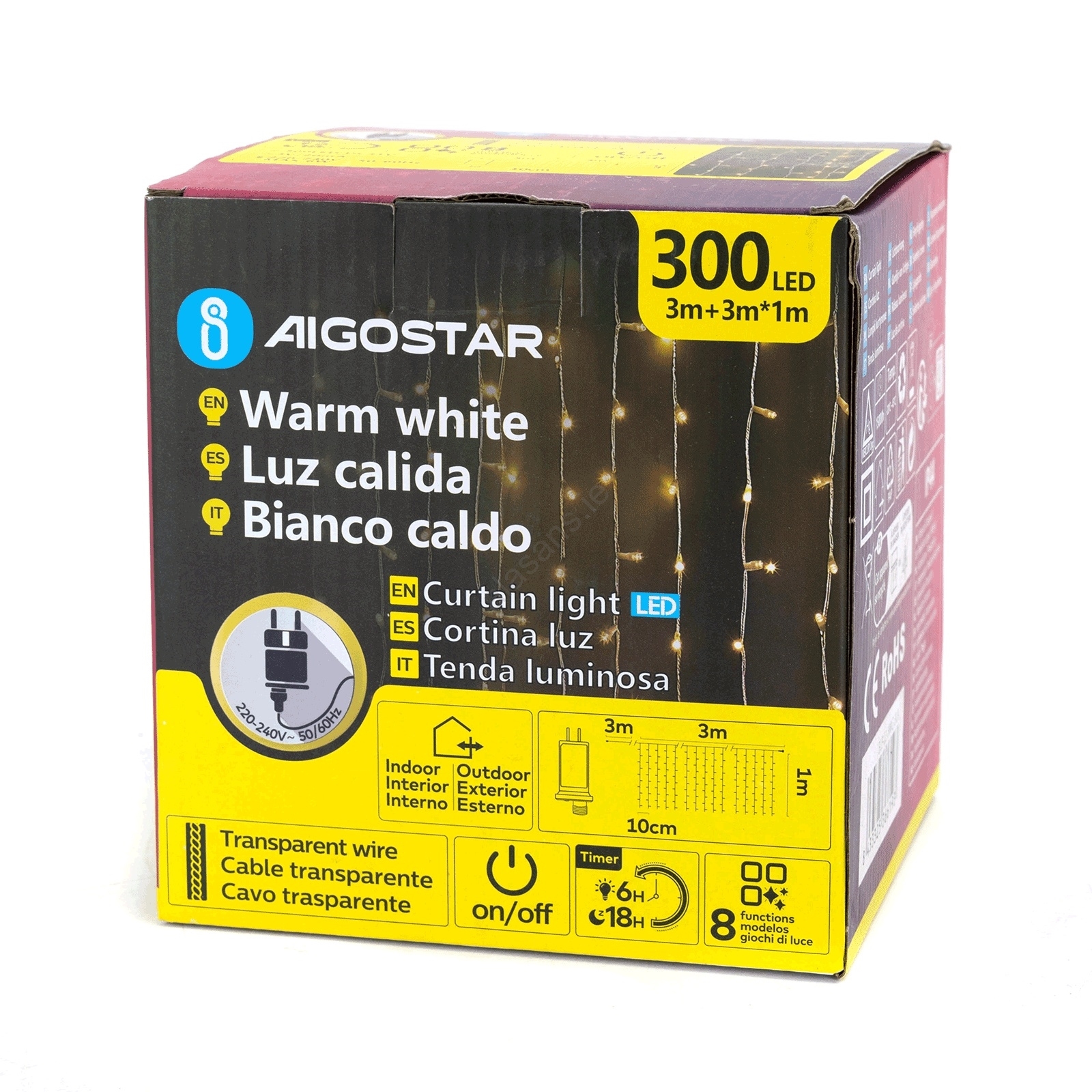 Aigostar - LED Outdoor String Lights 300 LEDs / 8 Modes 3×1 m IP44 Warm White + Remote Control