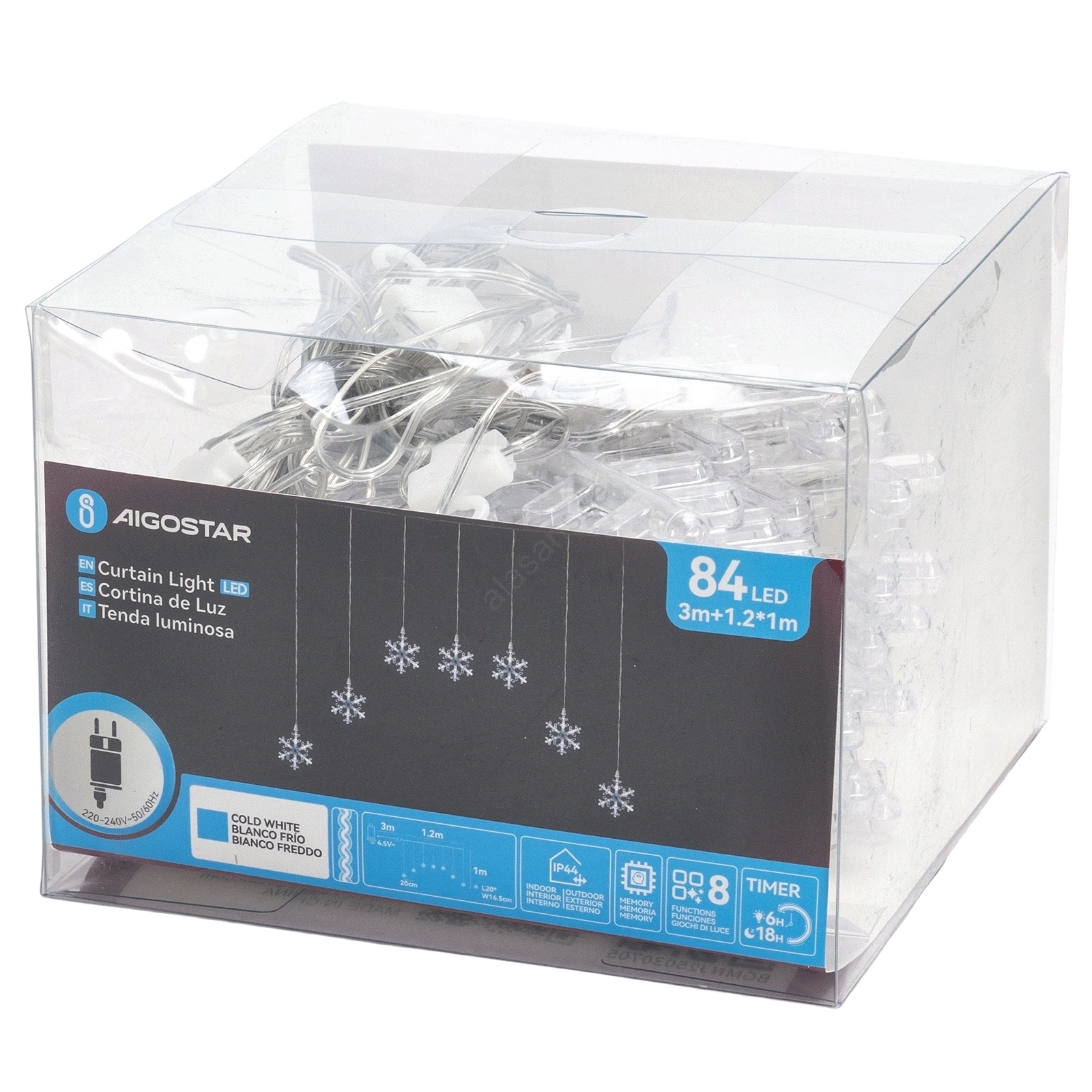 • Aigostar - LED Outdoor String Lights 84xLED/8 Functions 1,2x1m IP44 Cool White Snowflakes