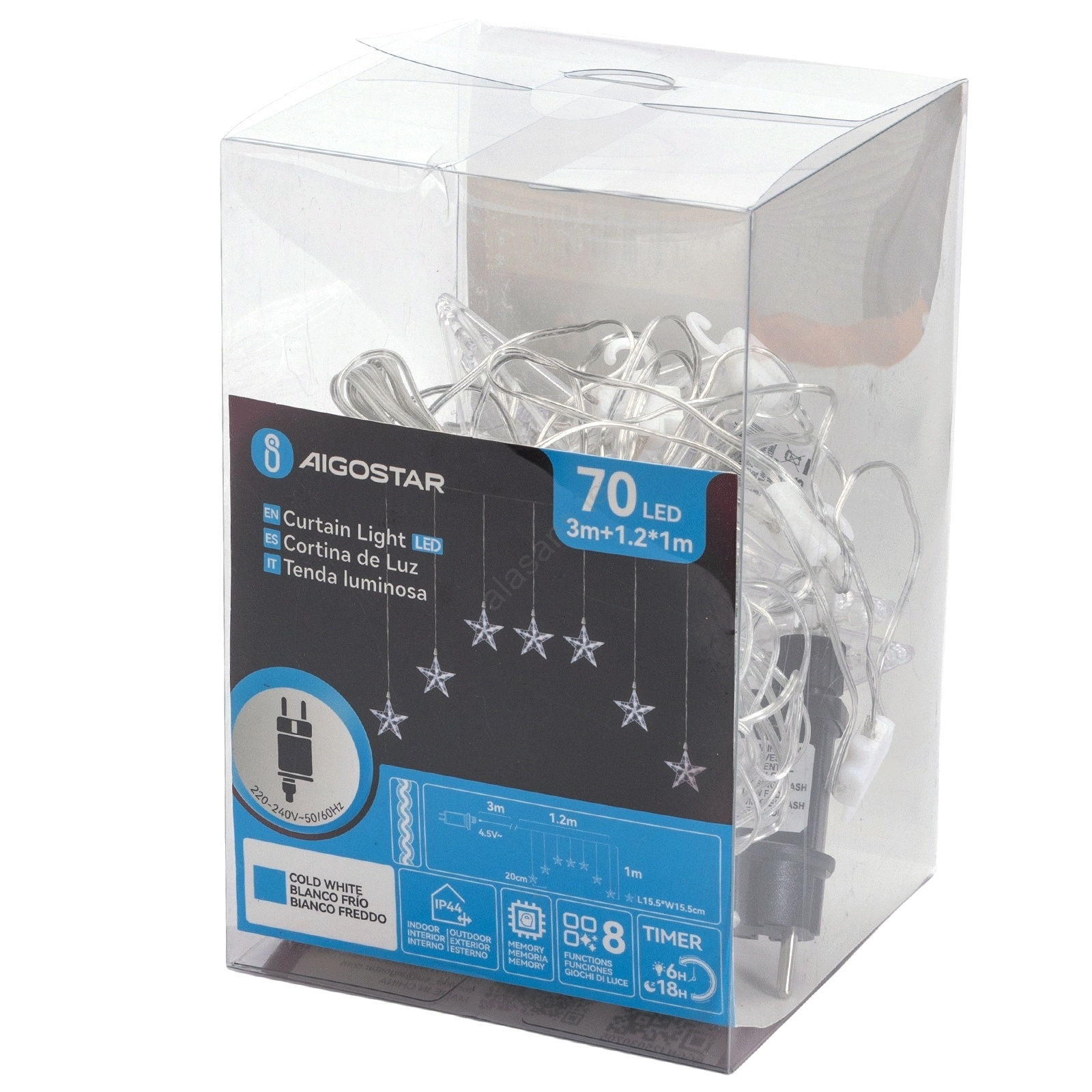 • Aigostar - LED Outdoor Christmas String Lights 70 LEDs 1.2 x 1 m IP44 Cool White Stars