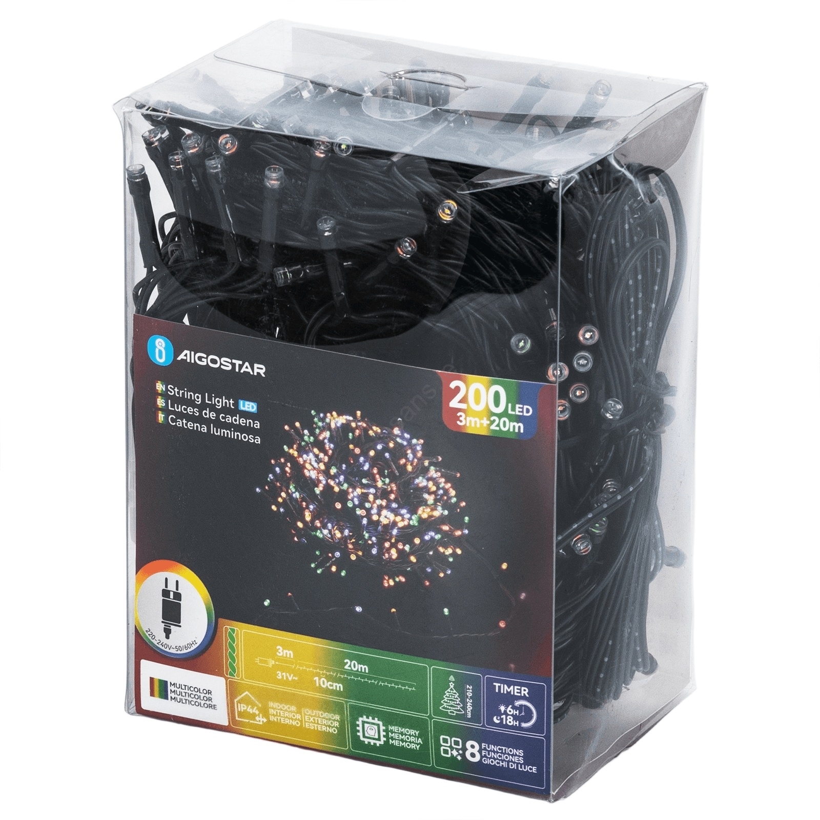 • Aigostar - LED Outdoor Christmas String Lights 200 LEDs / 8 Lighting Modes, 20 m, IP44, Multicolor