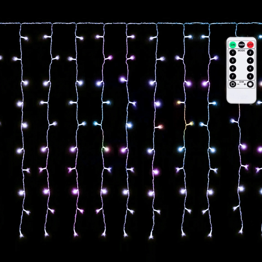 Aigostar - LED RGBY Outdoor Christmas String Lights 300 LEDs/8 Modes 3x1m IP44 + Remote Control