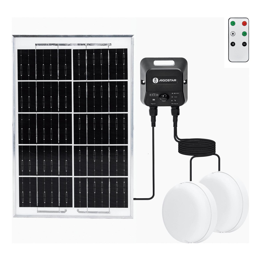 Aigostar - LED Solar Ceiling Light with Sensor, 2x LED, 35 W, 3.7 V, 6000 mAh, IP65 + Remote Control
