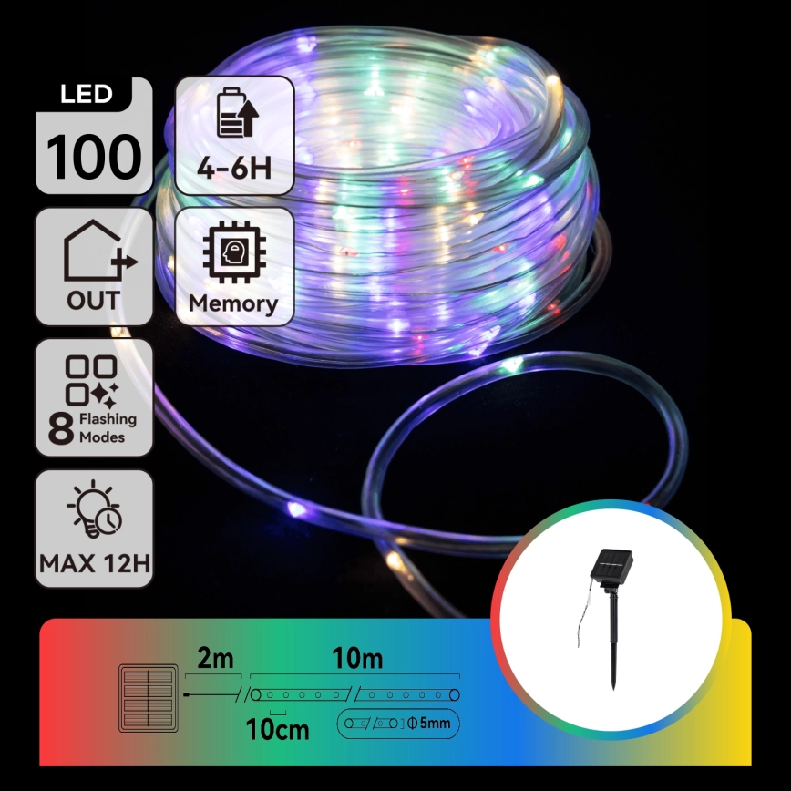• Aigostar - Solar LED String Lights, 100 LEDs, 8 Modes, 12 m, IP65, 800 mAh, Multicolor