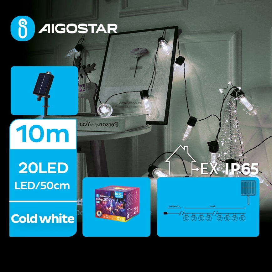 Aigostar - LED Solar String 20xLED/8 modes 11,5m 1200 mAh IP65 Cold White
