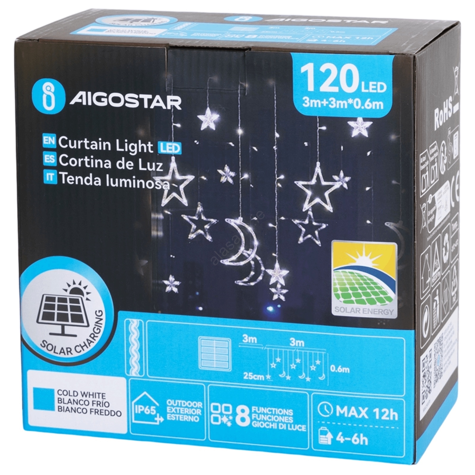 Aigostar - Solar LED Christmas String Lights, 120 LEDs / 8 Modes, 3 x 0.6 m, 500 mAh, IP65, Cool White