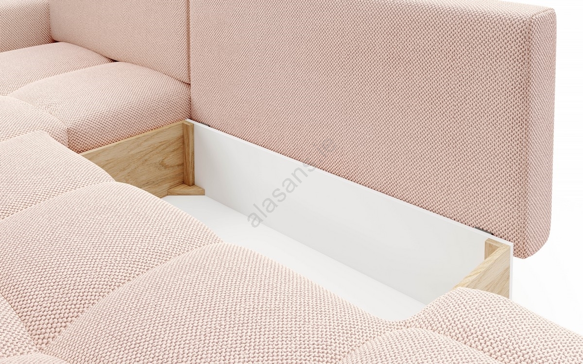 ALMADA L-shaped left-hand upholstered corner sofa bed with storage, pink