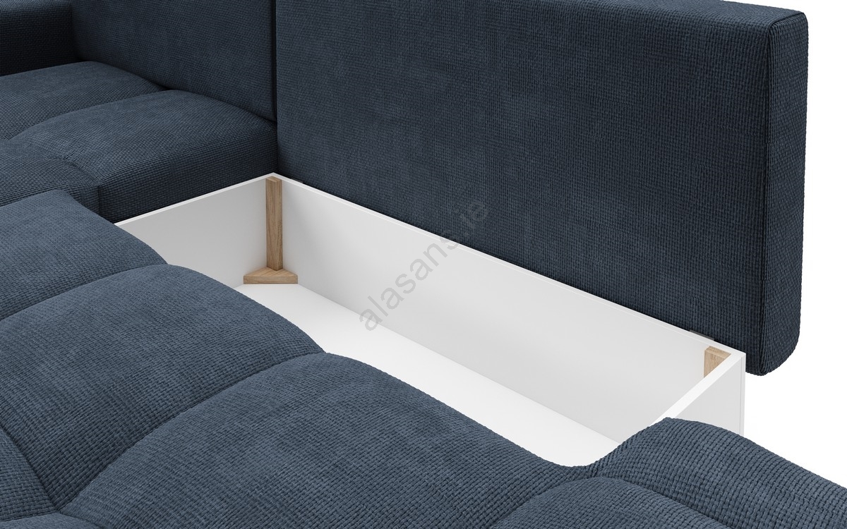 • ALMADA Right-Hand L-Shaped Upholstered Corner Sofa Bed with Storage, Blue
