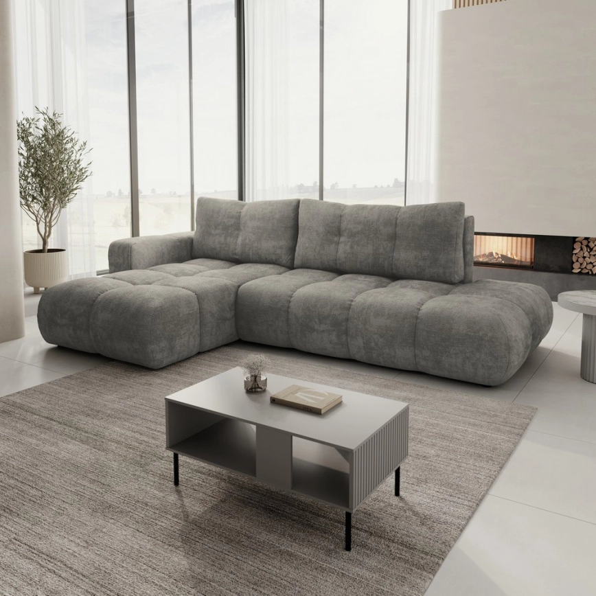 • ALMADA Right-hand L-shaped Upholstered Corner Sofa Bed with Storage, Gray