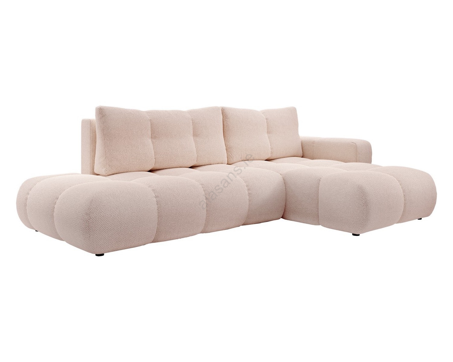 • ALMADA Right-hand L-shaped Upholstered Corner Sofa Bed with Storage, Beige