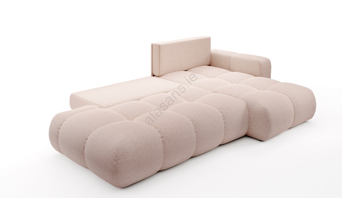 • ALMADA L‑shaped upholstered corner sofa bed with storage, left‑facing, light beige