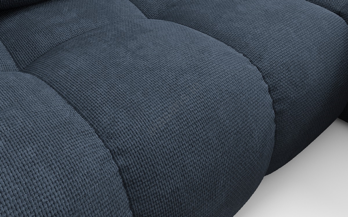 • ALMADA left-facing L-shaped upholstered corner sofa with pull-out bed and storage, blue