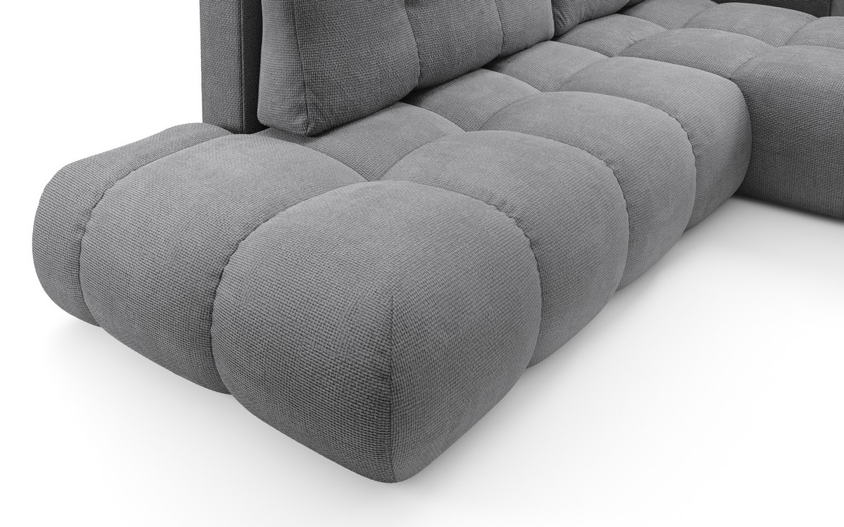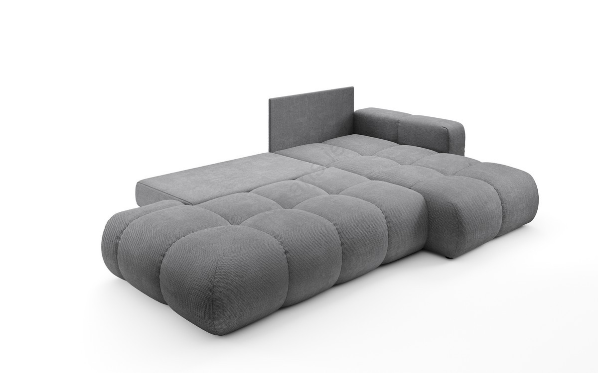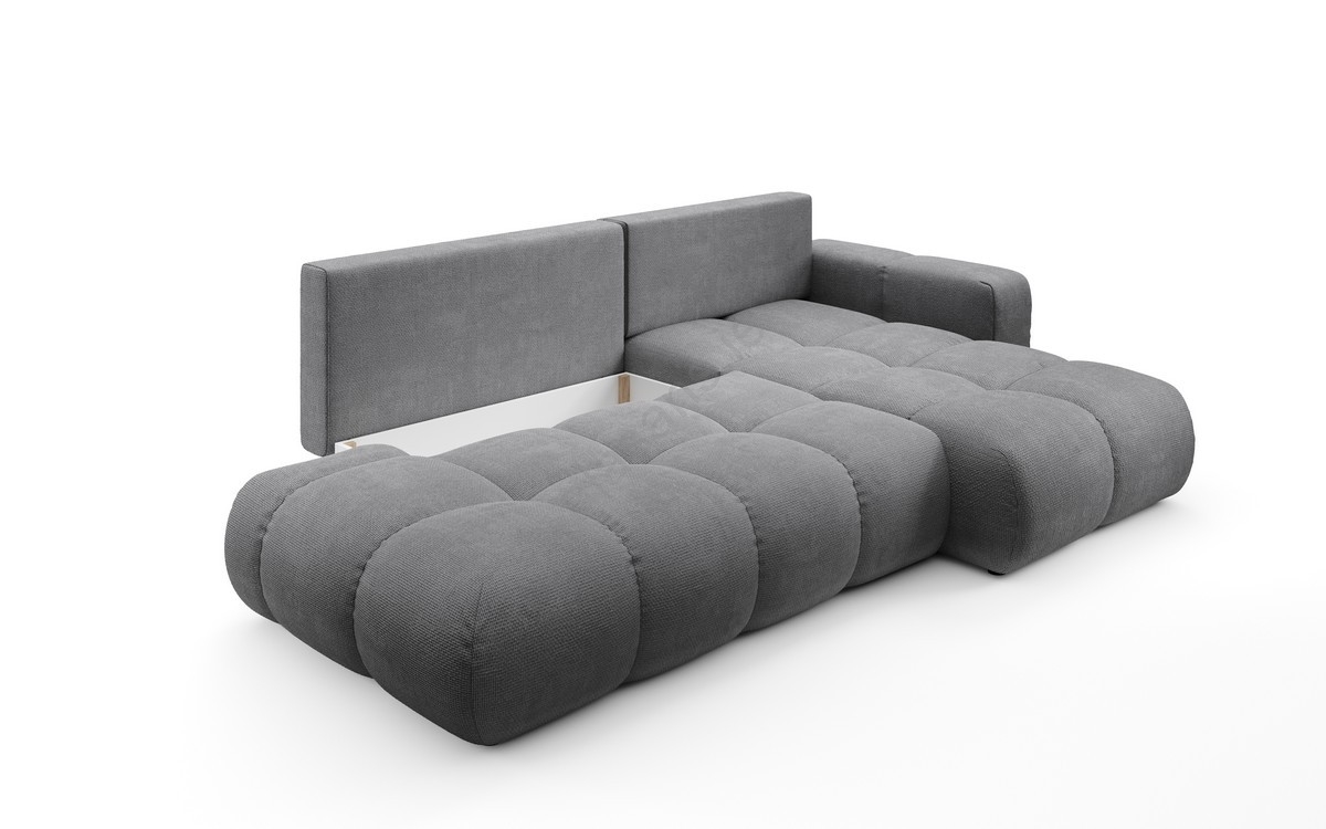 • ALMADA Right-hand L-shaped Upholstered Corner Sofa Bed with Storage, Grey
