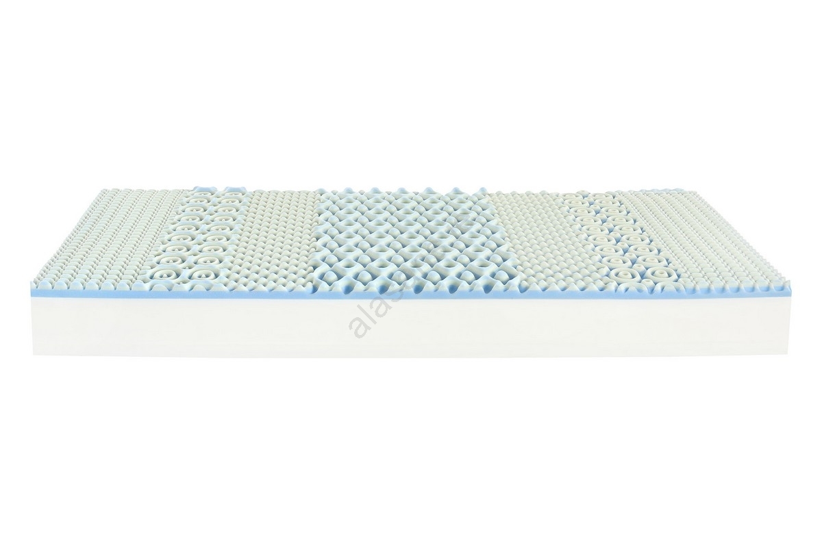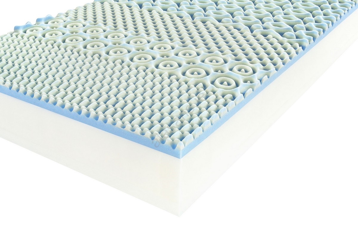 • Top layer with 3D memory foam combined with cold-formed hybrid foam – including a 7-zone wellness profile – and a bottom layer of cold-formed Flexi foam with massage profiling.