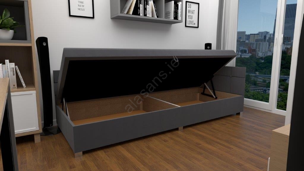 • Upholstered divan bed with reversible headboard and built-in storage AMSTERDAM 90x200 cm grey