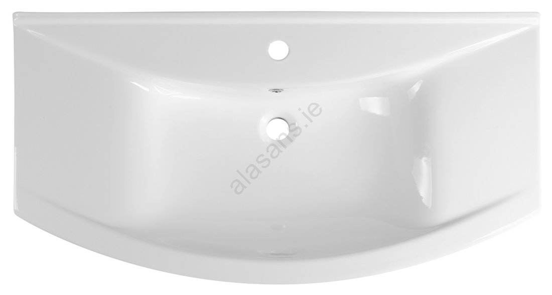• This washbasin is made of ceramic and features a contemporary design.