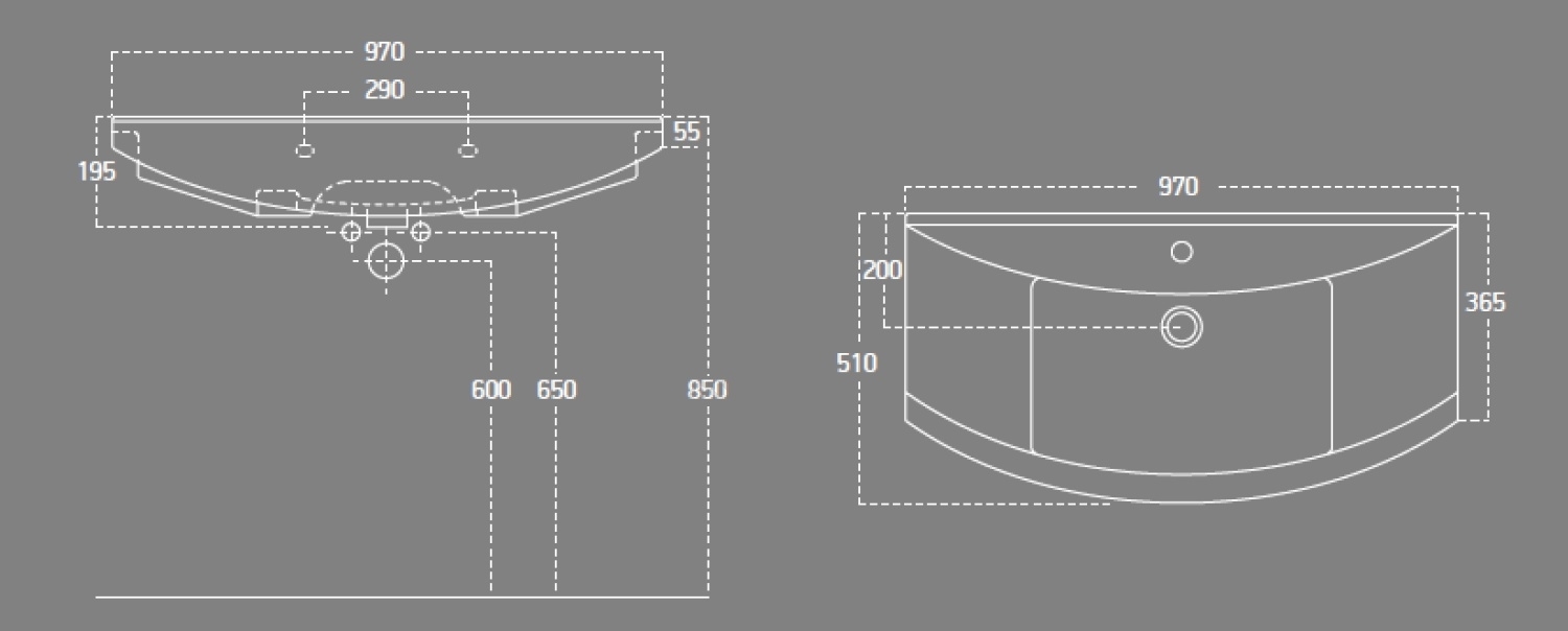 • Its dimensions are 970x510 mm and it is finished in white.