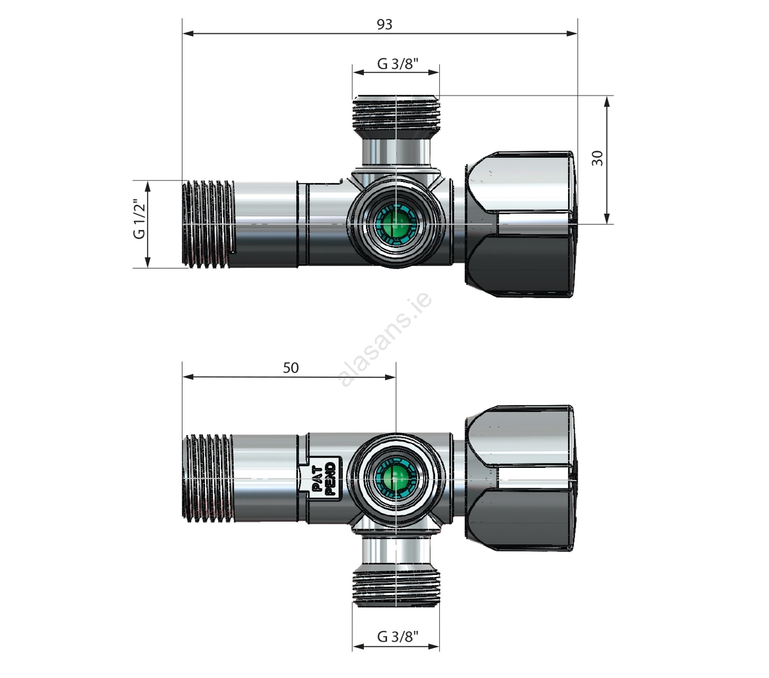 Arco - Corner combination valve with two outlets A-80, polished chrome