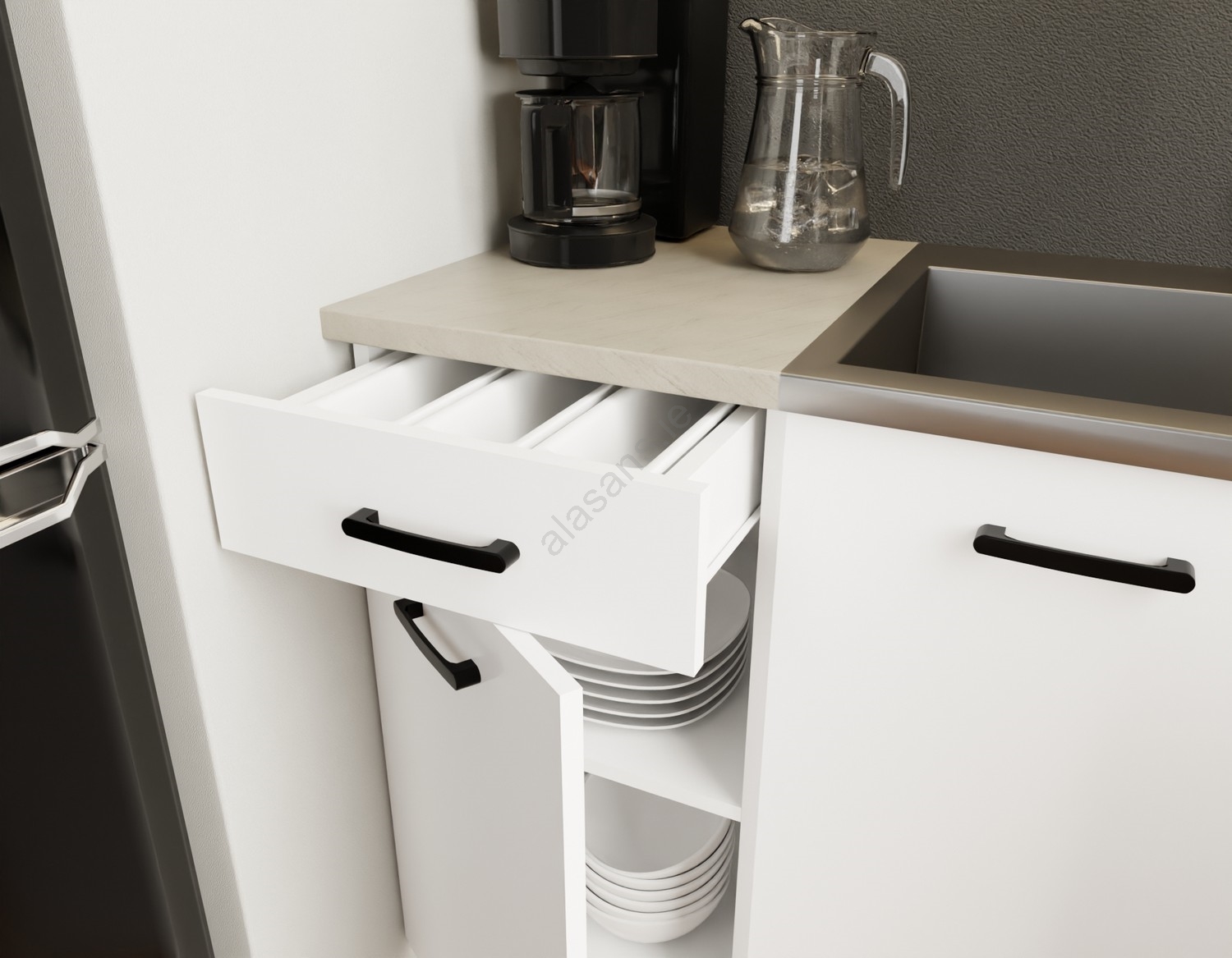 • Cabinet arrangement is modular, you can customize the kitchen to suit your personal preferences.