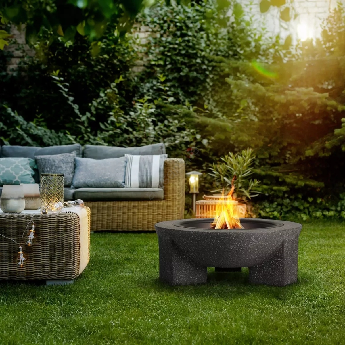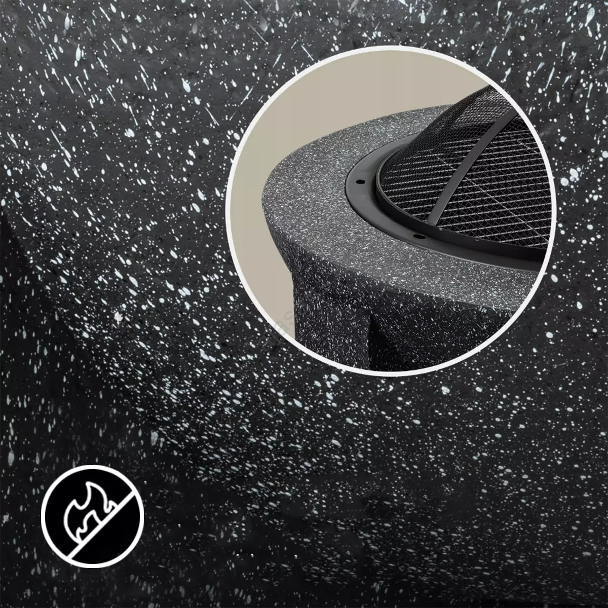 • The fire pit is made from heat-resistant materials (powder-coated steel and magnesium oxide) that mimic concrete.