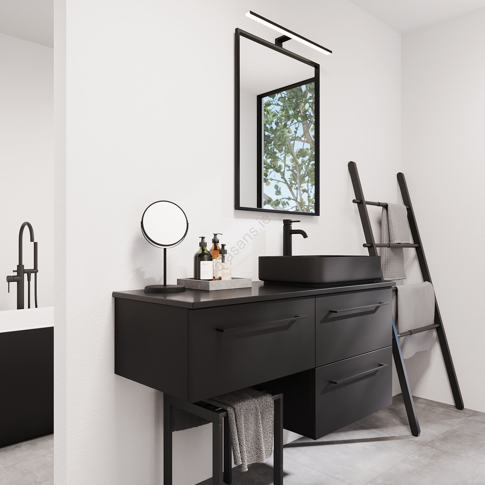 • By reflecting light, the mirror visually enlarges the space.