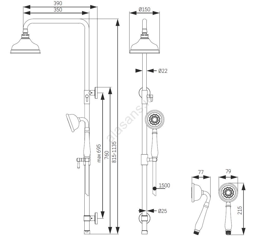 • Both the shower head and hand shower feature anti-limescale nozzles.