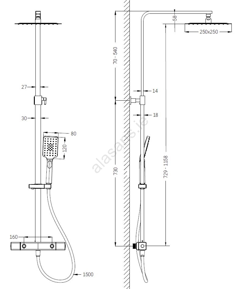 • Both the overhead shower head and the hand shower feature anti-limescale nozzles.