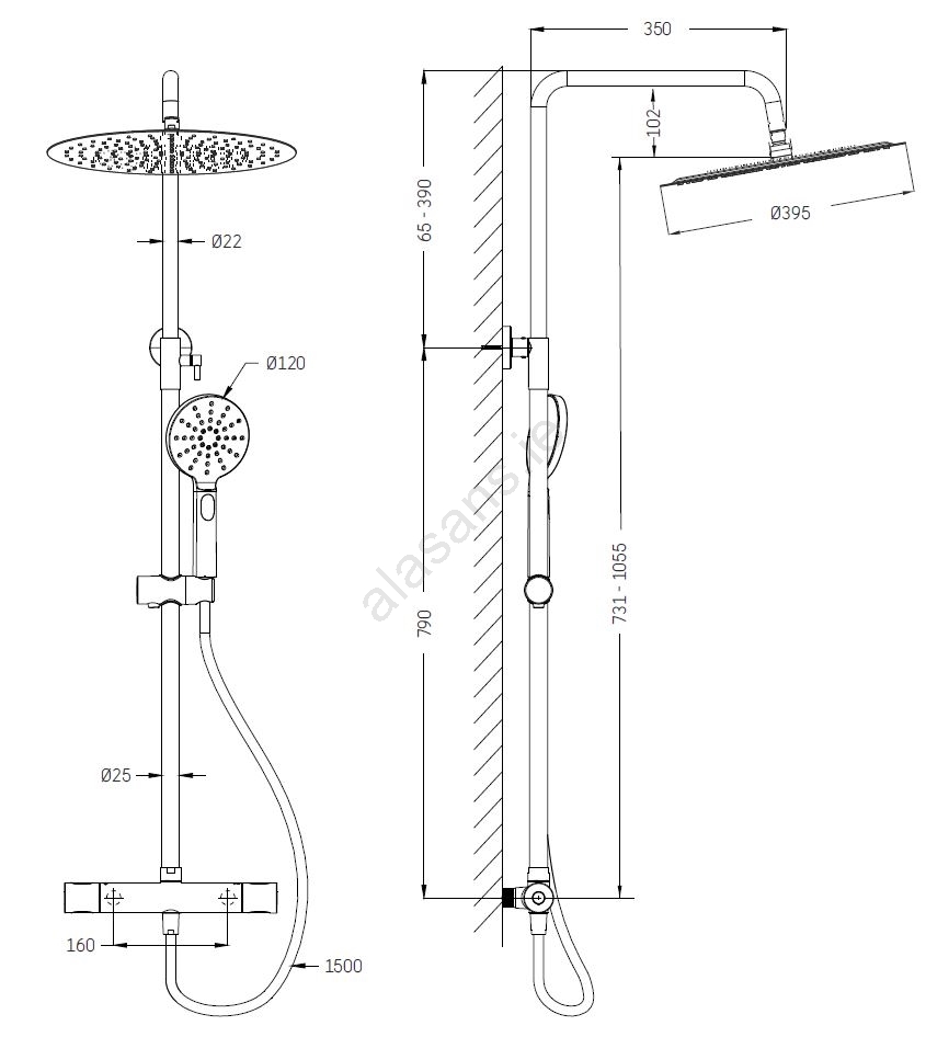 • Both the overhead shower head and the hand shower are equipped with anti-limescale nozzles.