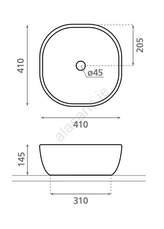 • Without a faucet hole.