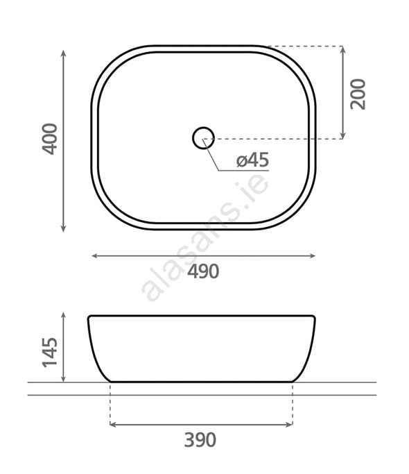 Bathco 4072 - OLEA Countertop Basin 49x40 cm Porcelain/White