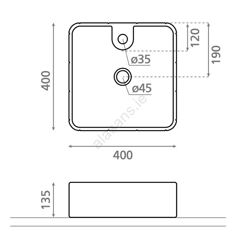 • The basin can be installed on a countertop.