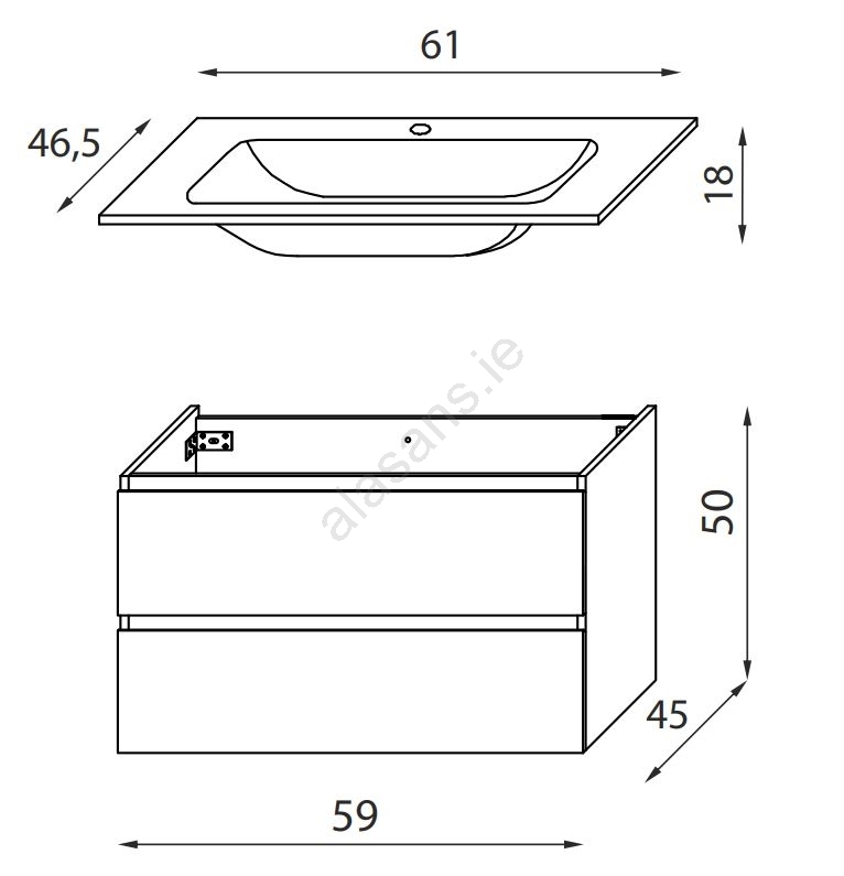 • The washbasin faucet and pop-up waste are not included.