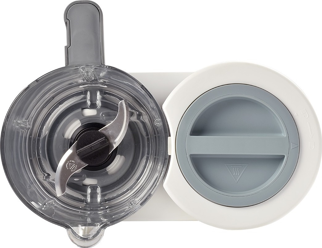 • If you want to blend the food afterward, simply empty the cooked ingredients from the basket into the transparent main container and blend (depending on the age of the child, to a fine smooth porridge or to a coarser texture with chunks).